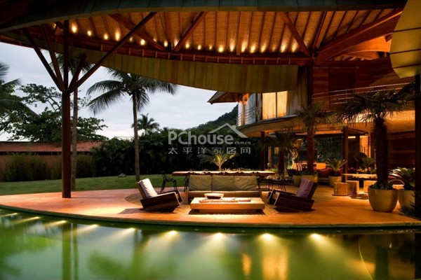 热带海滨别墅的阳台和房间之间没有走廊,是一个完全开放的空间,是社交聚会和度假的理想场所。