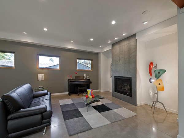 室内采用了挑高的天花板,抛光混凝土地板可辐射加热,卓越的开放空间以及木材楼梯。