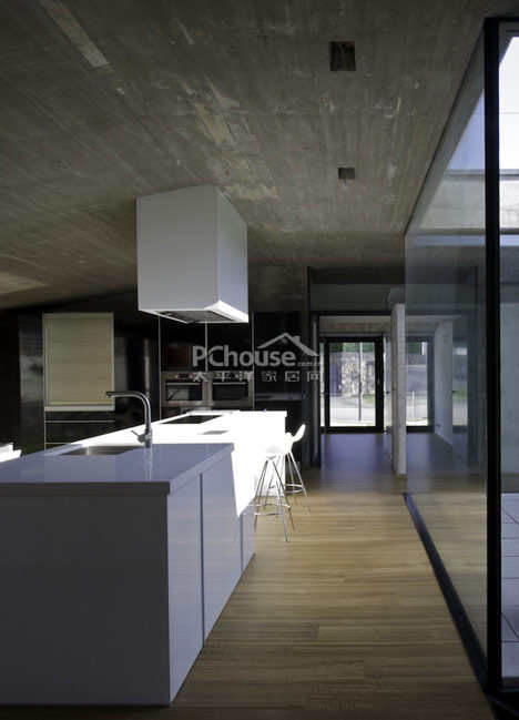地下车道连接着主卧室外伸的地板,上了楼梯,就可到达房子的“心脏”。