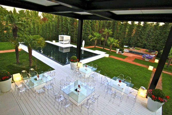 游泳池倒影着花园的景观以及别墅的外观。 这样的别墅在马德里是不常见的,有些人甚至会说这里充满着诗情画意。