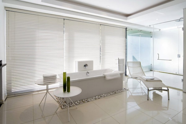 浴室的设计颇具心思,打开百叶窗让阳光直射室内,躺在沙滩椅上就可以享受阳光的沐浴。