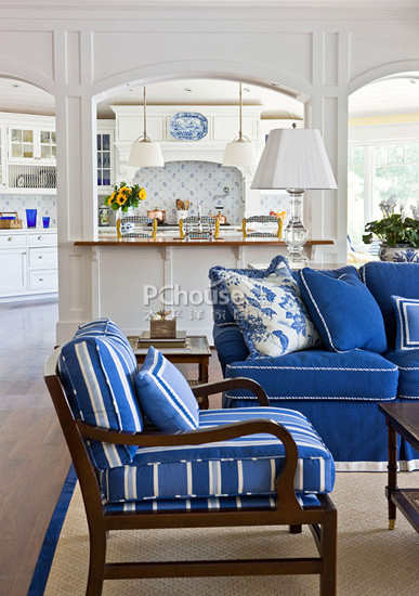 宝蓝色的家具与白色的墙壁相映衬,散放着大自然的气息。