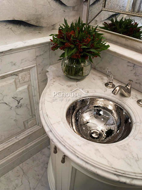 仿古的豪华面镜营造出干净明亮的环境,并且拓宽房子的空间。