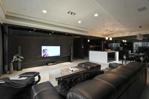 1.场域延续性是本案一大重点,墨镜铺排的主墙让餐厅与客厅自然呼应,让看似不同机能的空间有着协调性关联。