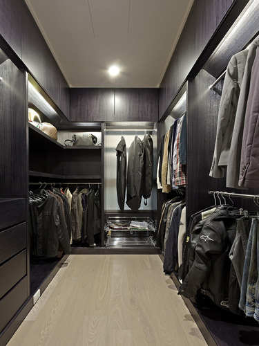 特殊的穿衣镜是张馨总监的巧思,大镜子是单开门的设计,可以通往后方的卫浴;而两侧的小镜子能灵活调整角度,让女主人在公主风的更衣室中大玩穿衣游戏。