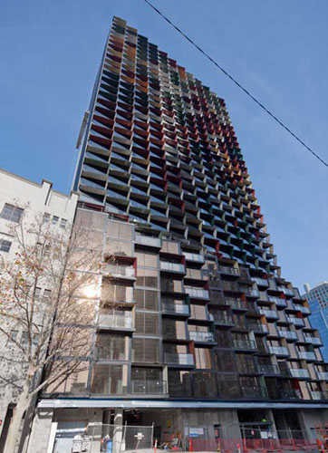 墨尔本的A’Beckett大厦已经接近封顶,起重机和构台撤离后,大厦外围和墩座的施工也接近尾声。这座公寓楼的首批内部装修即将结束,目前正在装修底层的零售区。大厦北部的立面有着五颜六色的遮阳板,看上去十分醒目。从大厦上可以看到商务区和Swanston大街的景色。这座大厦原本计划在明年2月建成,但由于施工提前, 它将有望在今年12月初竣工。