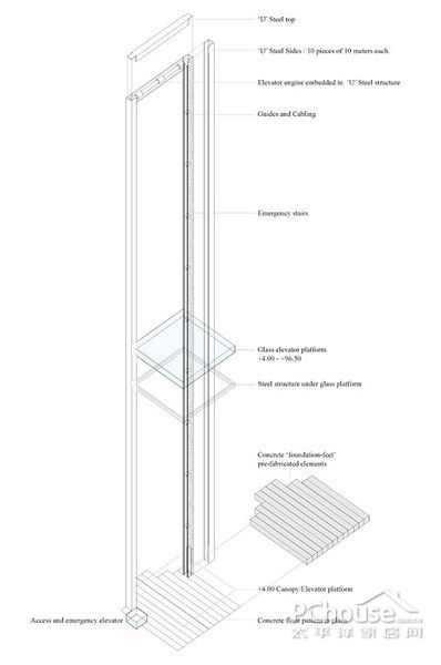 “伦敦之门”不仅有作为水平上大门的用途,还可以通过玻璃电梯平台作为一个垂直通道沿着建筑结构运行。