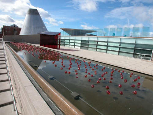 你知道戴尔·奇葫里将要建造一面玻璃的白色旗子,并把它插到那栋银色的建造上当做一首挽歌来表达他对好时公司巧克力的喜爱。虽然不能肯定这一说法,但是我们认为这栋玻璃造的巧克力般的博物馆可以弥补旁边的Brown&Haley公司外观的不足。