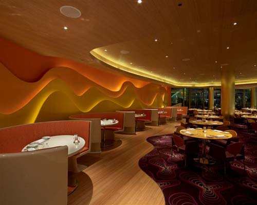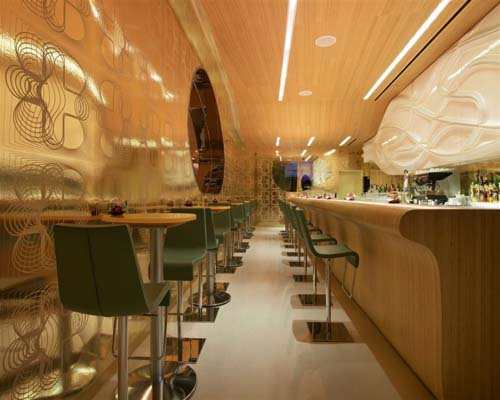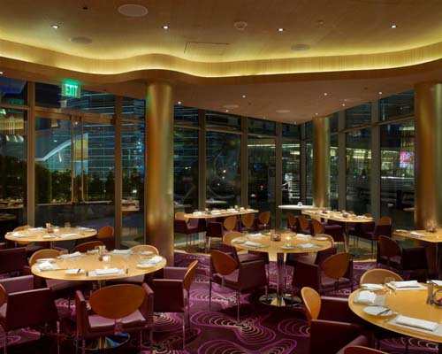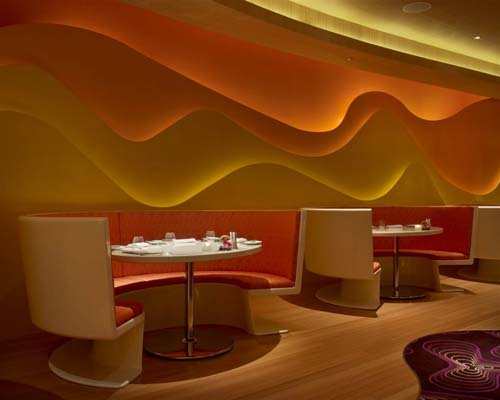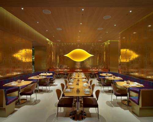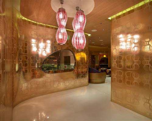 在进入Vdara餐厅之前,人们可以马上感受到“丝绸之路”的悠久历史,仿佛重现在眼前一样。精美的反射图案令人想起从未见过的东方挂毯。进入到视觉区域,那些纤维玻璃霎时变成了古代商人所用的家具。这家四星级餐厅让人垂涎欲滴。酒吧的颜色主要包括白色、粉红色以及玻璃金色、金属色,还有木制的天花板和朴素的纤维玻璃。