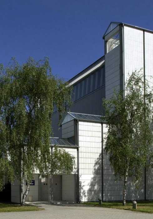提到Utzon,大家马上会想到他设计雪梨歌剧院,事实上,Utzon除了雪梨歌剧院外,还有其他许多驰名于世的建筑作品,尤其是他在家乡丹麦规划设计的一些住宅,和本文所要介绍的这座教堂,都是手法简洁,尺度宜人,与基地环境有良好的关联。据说,德国各建筑院校每年都会举办由师生共同加的学术旅游活动,Utzon的这些作品是他们的旅游目标。教堂侧身在长排桦树后,谦逊的伫立在城市的主要干道旁,以封闭内向的立面“回避”吵杂的街道,却不因此拒人于千里之外,相反的,因其宜人的尺度,以及所形塑的一种内敛的宗教场所气氛,反倒让人想要接近,甚或走入其中。