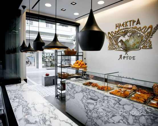 灯光的有效利用,突出了陈列柜上上的食品。在设计背景墙上,设计师采用的是精致的材料,诸如卡拉拉大理石、雪松木材和黄铜等。