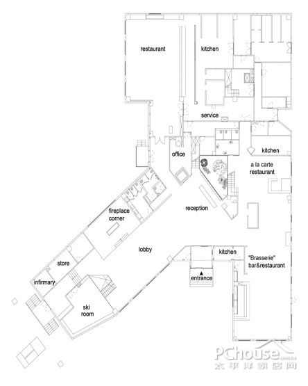 室内和户外的不同角度转换,造成有趣的外观视觉效果。通过将外景和不同的窗户形状联系起来,游客每次入住都觉得仿佛住在不同的房间里。公共空间之间的转换和视觉设计具有连续性,设计师还避免了走廊的形态。