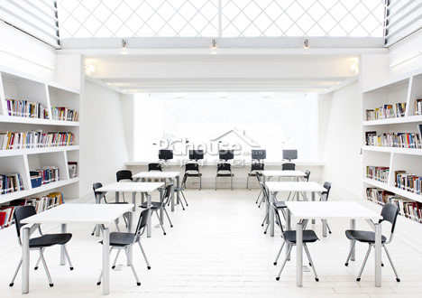 因此,图书馆面临广场7米长的外墙,并被自然风景所包围,让这里更有与众不同的读书趣味。