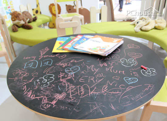 这是儿童的小书房,也是儿童的游戏房,这个桌子可以用来读书写字,还可以把它当做黑板,小朋友自己在上面自由涂鸦。