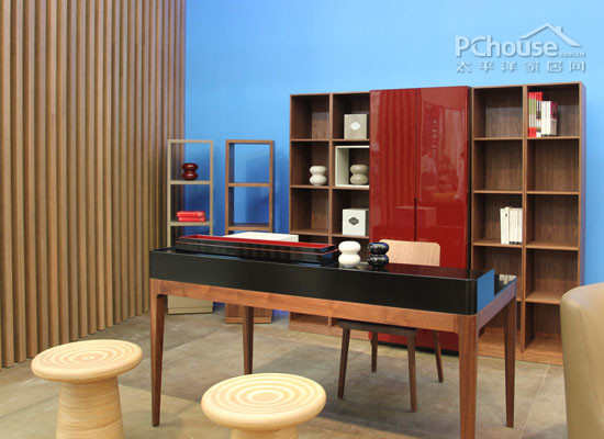 书房以棕色为主色调,搭配大红色,在沉闷中透出活力。当看书或者工作累的时候,看见这鲜艳的红色,也会精神倍加。