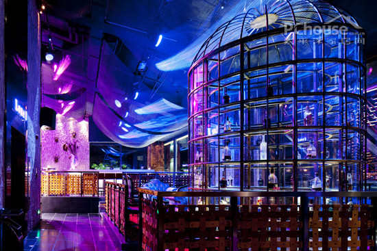 笼子形状的储酒室吸引人的眼球,在动感地带里是个标志性的亮点。