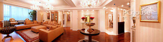 让我们感受高雅的还有迷幻的水晶吊灯。在射灯的配合下,样板间的整体格调就像是悠扬的贝多芬乐曲,高低协奏,不绝于耳。