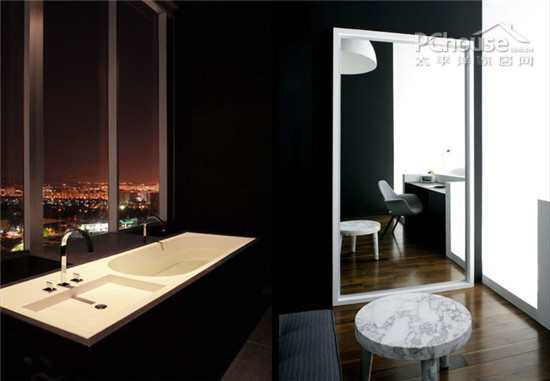 【太平洋家居网 设计频道】作为墨西哥精品酒店巨头Habita集团旗下的第八间酒店,Distrito Capital与其他酒店相比最大的特色就在于它如水墨画般的色彩。虽然酒店位于墨西哥城的闹市中心,Habita却执意要与周围的灯红酒绿划清界限,为此酒店特地邀请法国设计师Joseph Dirand为其操刀室内设计。实际上这已不是Joseph Dirand与Habita集团的第一次合作,他早前为Habita集团设计的Hotel Habita Monterrey就以简约的设计著称。此次Joseph Dirand依然延续他惯用的个人风格,以黑、白、灰为客房的主色调,打造出一片简单而纯粹的空间。