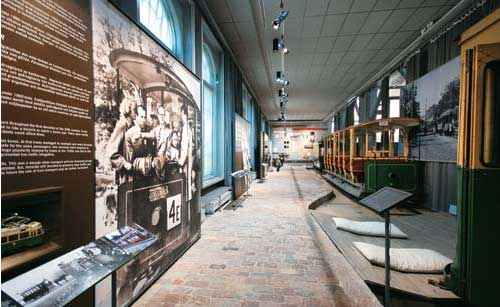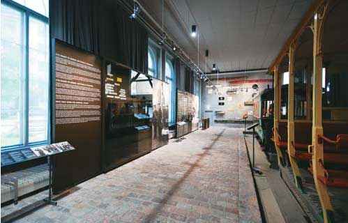 要实现如此的空间格局十分不易,为了在中间的位置安排礼堂及商店的多功能区域,设计师必须将中间的一路电车移走,这一过程就花费了大量的时间。结果是原本多达数排的电车被删减到了两列。空出来的被咖啡厅、商店和画廊取代,展览的空间则集中在里方,更加紧凑。为了增加空间的现代感,设计师在入口的小厅和电车大厅中间用玻璃面墙进行区隔,一方面增加了空间的通透感,另一方面是的过道两端的活动能从视觉上统一起来。另外,在特定的空间内,为了满足更多的功能与要,设计师尽可能将每个局部都做了可移动处理,比如礼堂内的椅子可以拆分,也可以搬动。这样就可以满足来礼堂参加活动不同的人数上的需求。当然,这还仅仅是简单的“可移动空间”的技巧。实际上,这个整体空间内,所有的功能空间都可以移动,设计师在底部都加上了可移动装置。这让整个博物馆变成了一个舞台,时间与空间在这里都能自由的展示。