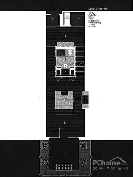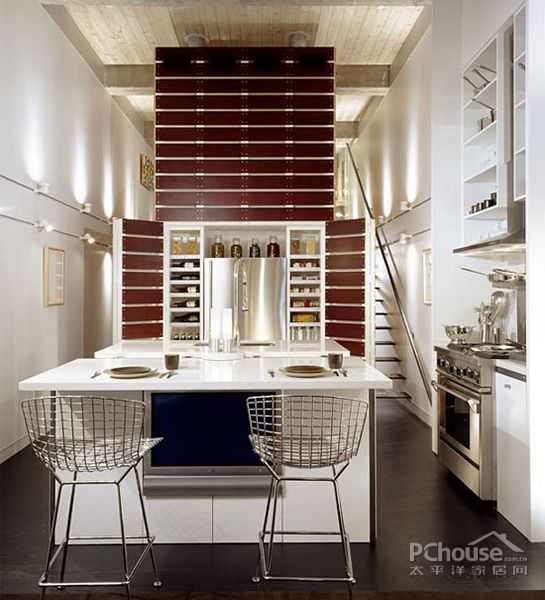 这栋公寓在空间的设置像是 “玉米垛” ——一种用于储存和烘干玉米的农用仓库。 “小仓库”把公寓分成南北两部分,北面用于私人聚会,南面用于公共活动。在“仓库”本身设有化妆室,下面一层用于食物储存,在上层有可以用来睡觉的阁楼。一面墙把用餐处和厨房分隔开了。由于极端的空间限制,公寓需要创造性的和有效的办法来解决基本的家庭生活需要。