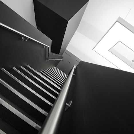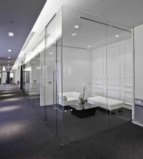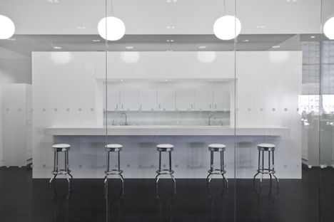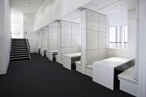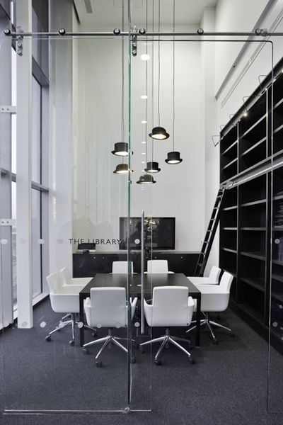 Studiofibre在10米高的空间和一个玻璃的会议室之间安插了两个夹层。