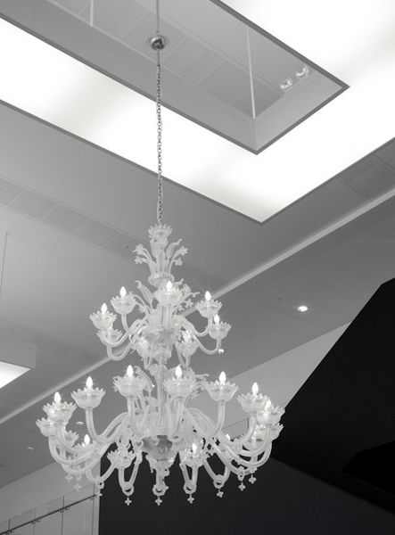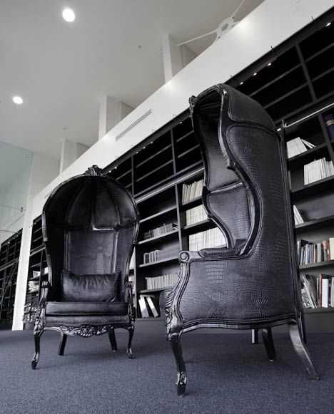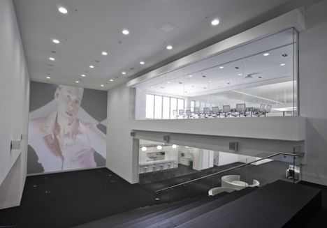 不论是否窃取了设图书馆里或坐在电影院台阶前的沉思者的头颅,总部设有按照电影院墙的比例设置的时尚设计的背景秀,混合了古典与现代、传统与创新的风格。不论是铸模成型的一些细节设计,或过大的镶板门,门面的部分总是非常显眼,提醒你现代新科技推动了现代时尚的发展。