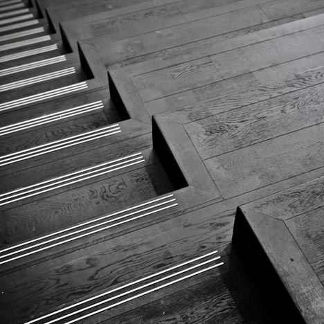 结构上,两个新的阁楼建起来了,各自都有独立的楼梯,为周围的空间提供有趣的流通。同时在通往大厅的出口旁有一个浮法玻璃会议室,可以看到整个工作区域的美妙景观。宽阔的木雕阶梯像在空间的中心设立了“影院”。