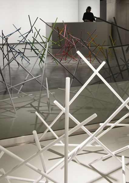 像飞过空间并在那流动一样,彩色棒分布在整个空间。时间仿佛停滞不前,“一种失去平衡的平衡”的概念由此产生。