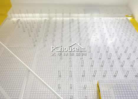 我们在五米高的墙上制作了一块巨型插钉板,让灯光从背后照射出来。那些粗糙的五金店材料变成了环绕整间服装店的临时性花边装饰。除了这个垂直的插钉板,横向的陈列装置由一些回收家具改造而成。那些装置被挂在插钉板上的服装隔开,好像是从墙里扯出来的一样,露出黄色的内衬。之所以选择插钉板的材料,是因为它是最灵活的陈列设施。使用这种材料,店内的陈列空间可以不断变化、延伸和变形。