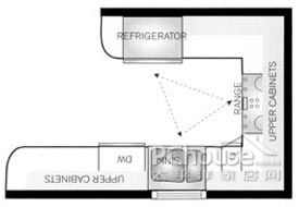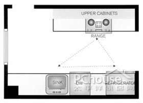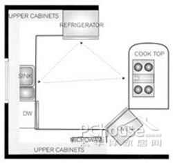 这些设计很好地工作,虚心规模较小的厨房。三角可以改变,如果它在厨房内工作三角描述的长度停留。 (这三个方面的总和距离不应超过26人,每个站应在4'和9。')