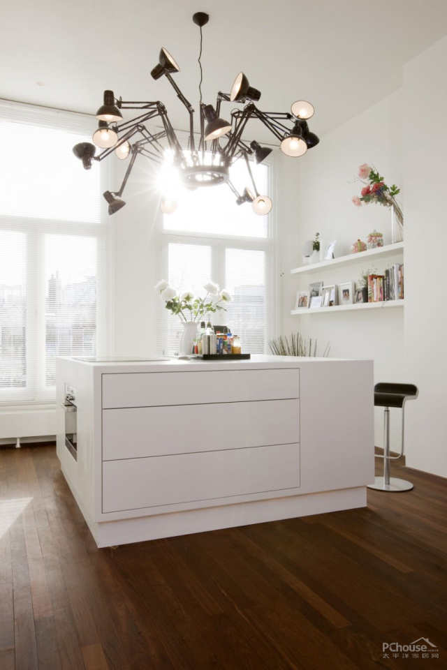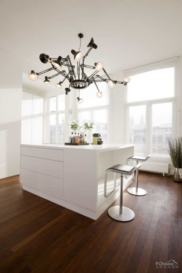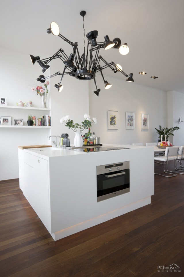 霍夫曼Dujardin建筑师所设计的小户型公寓主要是针对年轻白领族,整体设计不喧哗豪华,只一味地从对白色崇拜和追求,从烦躁的现实社会中寻回一席自我栖息之地,向往宁静与平和。再加上极具时尚感的橱柜组合与“Dear Ingo”照明灯,也就更符合广大白领的要求了。结束繁忙的工作回到家里,看到这温馨的一切,又岂能不舒心呢?