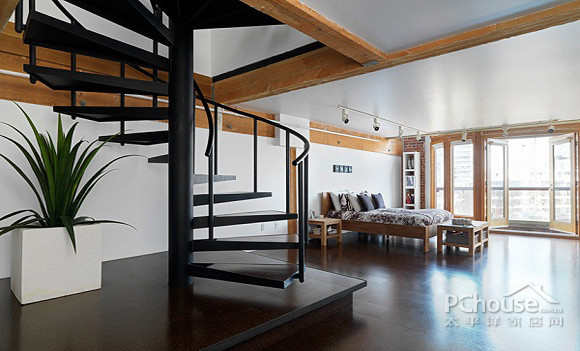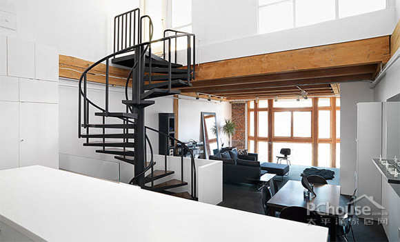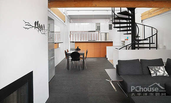 这栋位于比蒂街550号的建筑是温哥华首个“纽约风格开放式阁楼”——一间1907年的仓库最初在1981年被翻新成住宅的开敞式布置的阁楼。在这一新的建筑物的生命的第三次迭代中,这栋两层的住处被设计分作楼上1000平方英尺的生活和娱乐“公共”空间和楼下1000平方英尺的的睡觉和玩耍“私人”空间。