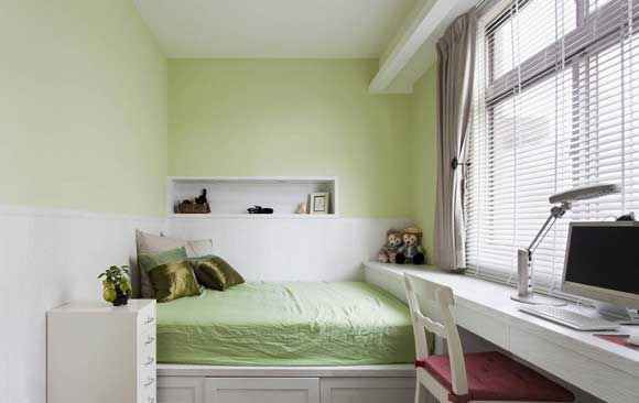 预留的小孩房也可以是孝亲房,青苹果绿和白色完美融合,在在突显设计师配色的功力。