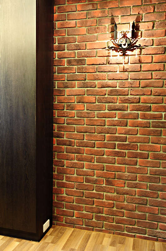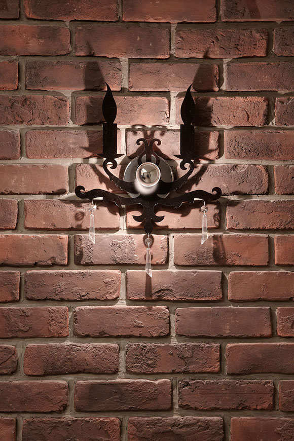餐厅大胆运用红砖墙文化石铺述,配上造型简单的玻璃白色单吊灯,不会抢走主墙的风采,红砖粗矿凹凸触感与黑色自然木纹质感,堆栈出浑然天成的原始风情,红砖上加上特别的壁灯.自然形成的光影效果很别致。细看文化石红砖墙和木作衔接处,充分展现出异材质的冲突混搭的美感,配上装饰品及光影的效果,彷若艺术作品般令人着迷。