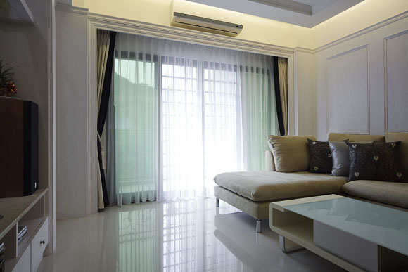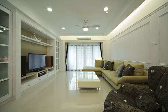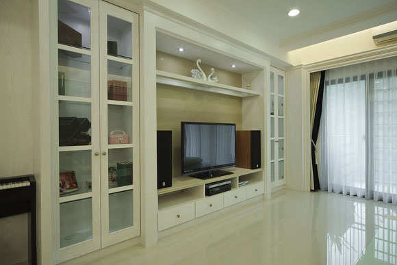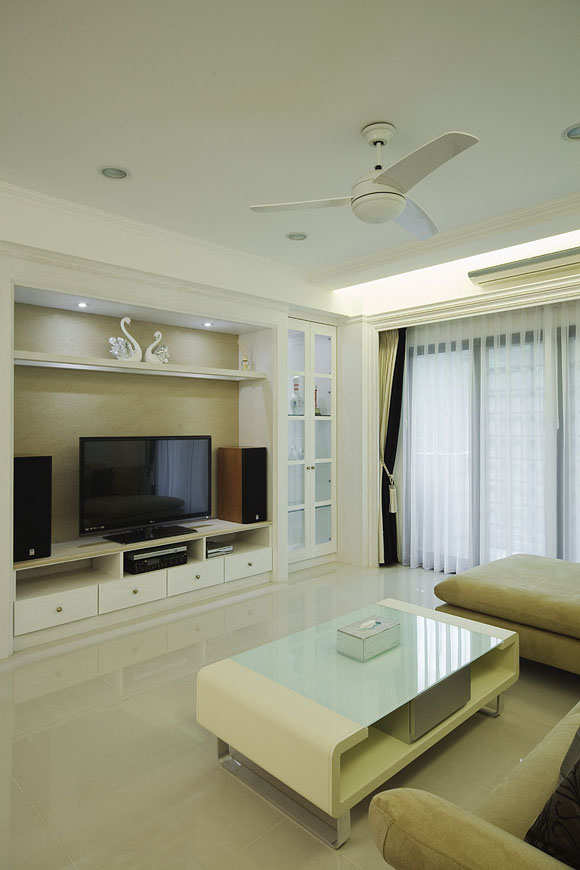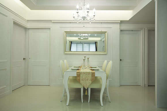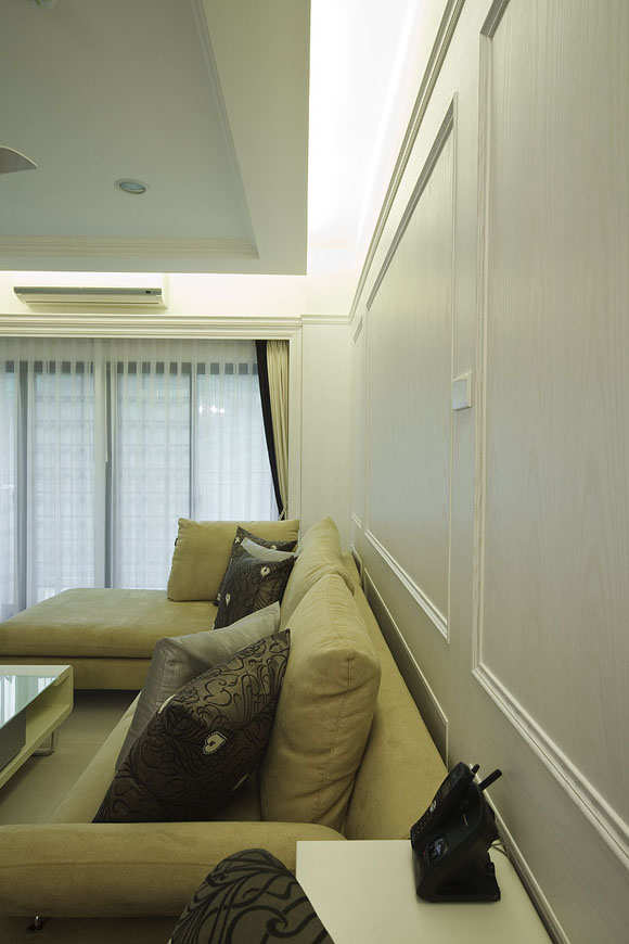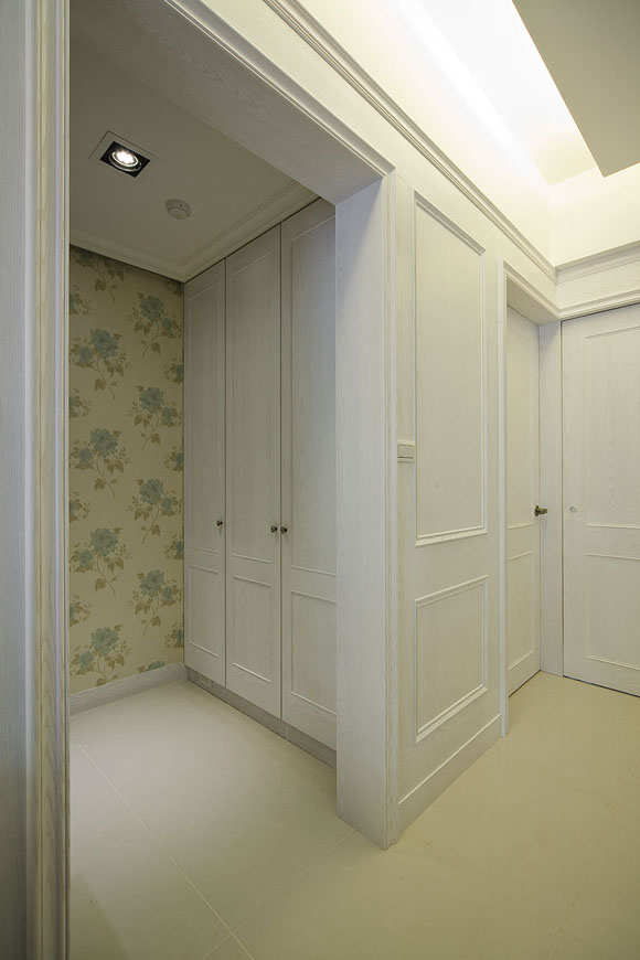 色调统合上,全室内设计皆以全木包覆天然木皮、喷白漆制成,繁复工序,应用于衣帽柜、鞋柜甚至电视柜,湿布擦拭于上,轻松还原出洁白色泽,兼顾起屋主实用性。