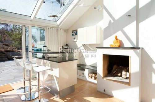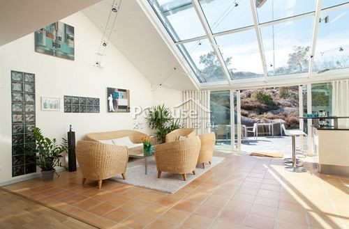 这间别墅是开放式设计,但几个主要的公共空间之间还是有微妙的连接。别墅的面积足够大,可以同时供两个家庭使用(其室内的使用空间是分开的)。高高的天花板,天窗以及擦得光亮的玻璃窗——这几种元素的组合使得这间别墅有良好的通风和光线。