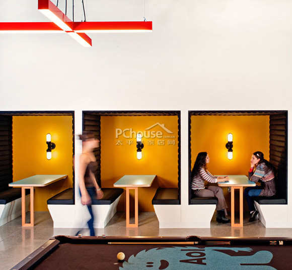 在帕洛阿尔托的中心地带,现有的空间和基础设施保留了1980年的企业美学,加入一些干净的,白色的帆布揭天花板,墙壁和玻璃创造一个“透明神奇世界”。 AOL在空间设计中确保他们的办公团队在办公过程中的协作精神,却又能很好的保证每个人都有独立的私人办公室。