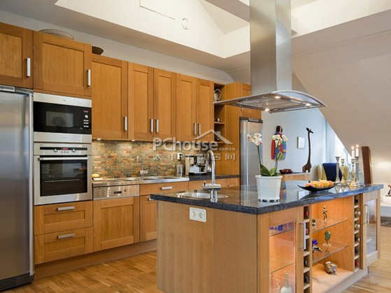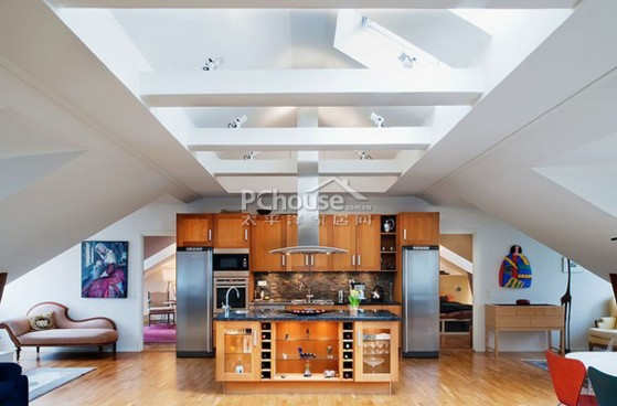 客厅自然是阁楼的聚焦点。然而,适宜的对称性同样让厨房的位置变得十分的吸引。