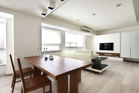 主要建材:柚木家具、大干木皮、水波银枫木、染色超耐磨木地板、克多木皮