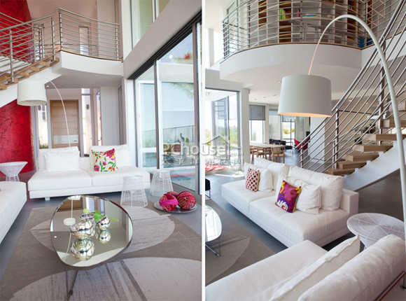 它的内部,其壮观的曲线,完全相反的几何外观设计。 家具和地板实木复合地板配件指定的黑白色,灰色,石墨,黑门,不锈钢钢嵌套进实心橡木家具。 房子的中心焦点是7米高的弧形墙,红色油漆装饰砂基地,将温暖送到这所房子。 红漆门入口附近为主,增加了欢迎宾客的一个注意。主要是防止最大的山体滑坡事故,使建筑得到最大话的安全性保障。
