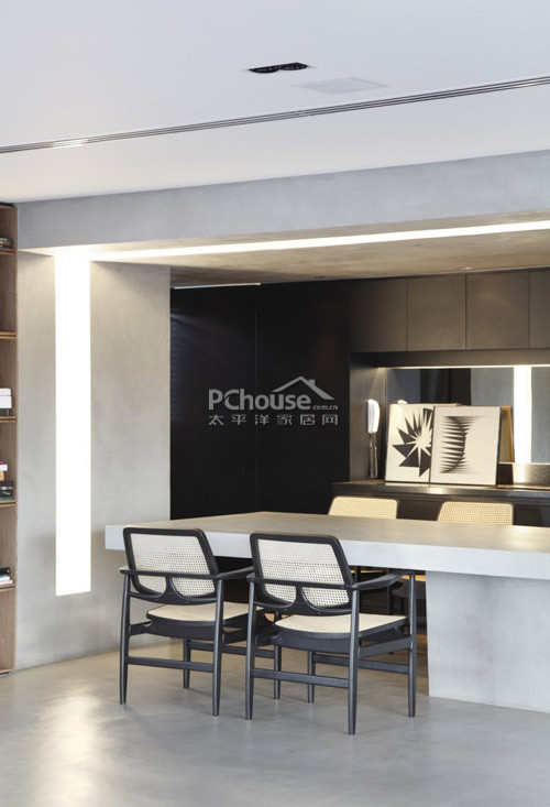 所有的墙壁,确切地说空间设施,设计师可以根据需要全部重建。在公寓的每个地方包括地板、楼梯和所有能够看到的墙面,设计师都采用水泥。