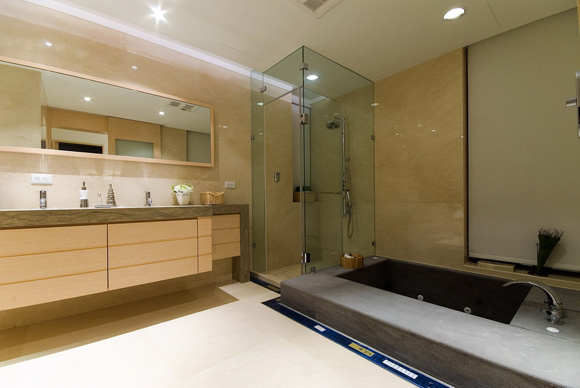良好运用硬件条件及调整室内格局,使生活空间达到最佳的配置,是比沙列设计总监张静峰最擅长的部份。此案位在天母,房子拥有天生优良的地理条件,且因所处地势较高的关系,开窗即可俯视山景,为不浪费优美的风景,特意将客餐厅连结成气,让偌大的窗景,成为屋内的视觉焦点。