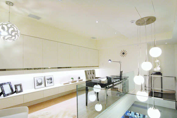 由主卧通过天桥过道,通往设计师的私人书房,面积不足的缺憾,以居高临下的视野弥补,令书房区有了宽敞的错觉。