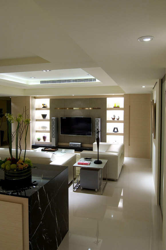 为了顾及居住者的健康,设计上增设了空气交换系统。优点就是可以将外面的空气吸进来,把灰尘过滤掉,而且还有保温节能的效果,而为了让视觉上维持协调,所以把所有的机器都以隐藏式的方式规划,隐匿于天花板的设计之中。