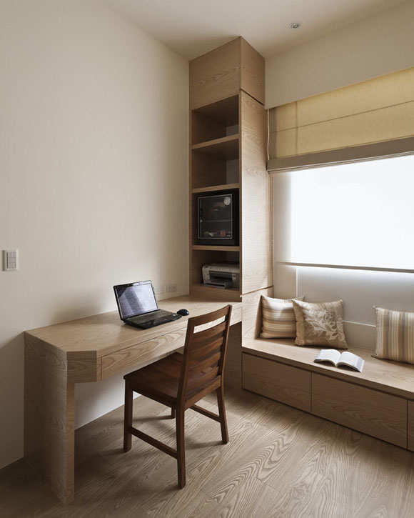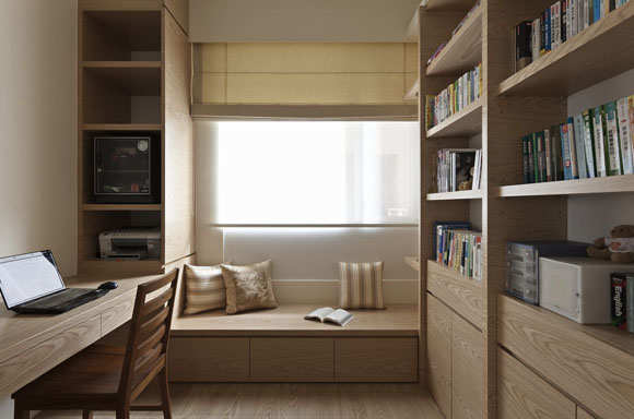 书房以天然木板纹理展现出书房朴质休闲一面,书墙、书桌及座柜一气呵成,让夫妻俩可以自在沉浸在书香中。