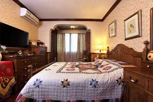 设计说明:深色基调与布艺的运用,加上精心配置的家具与配饰,使本案的空间形成了美式田园的风格。本案的设计师代之以大量的“暖”和“柔”,从家具到布艺的搭配,灯具与配饰的选择,均努力营造一个温暖、舒适和温馨的家居生活空间。