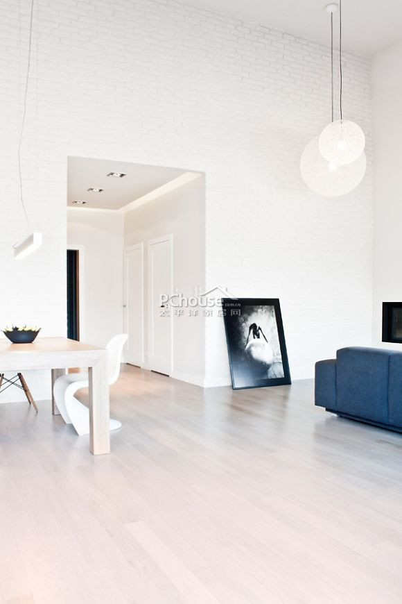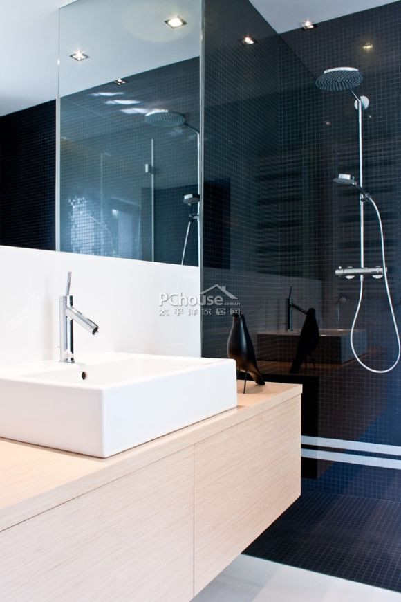 【太平洋家居网 设计频道】整个空间以冷色为主调,白色、淡木色与深蓝黑浓淡相宜,配以灵巧生机的小摆设,整体呈现出冷调的淡雅。