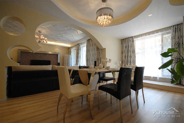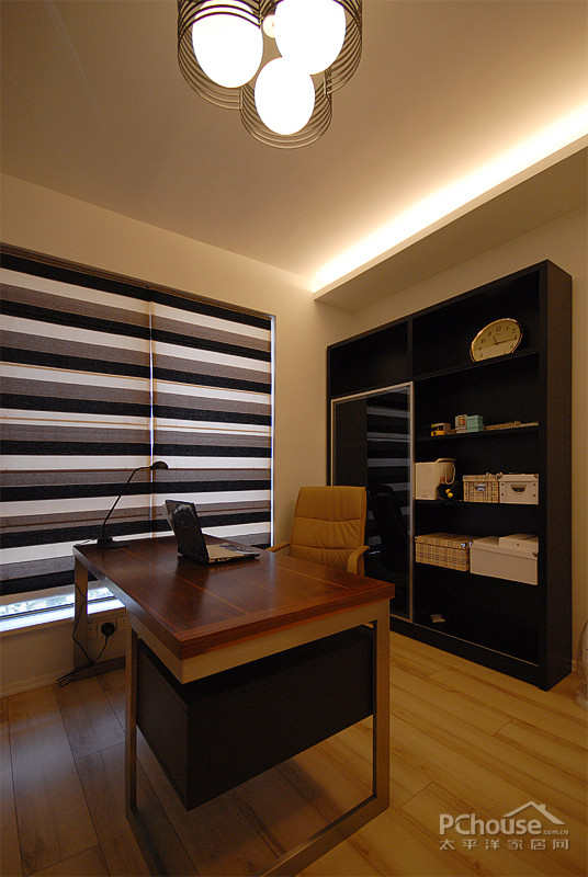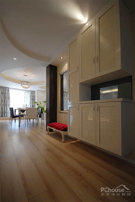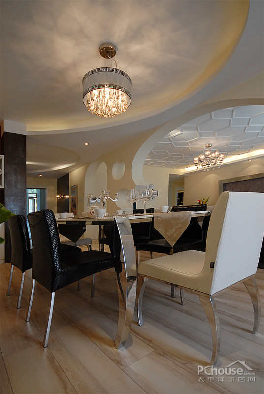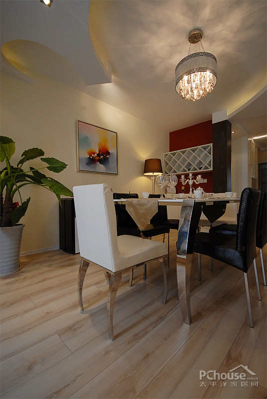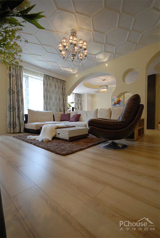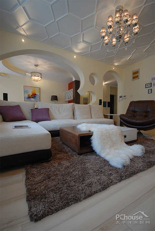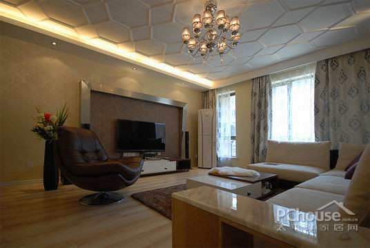 【太平洋家居网 设计频道】天花板上简单的线条组成的多边形,让空间看起来更加开阔,有立体感。