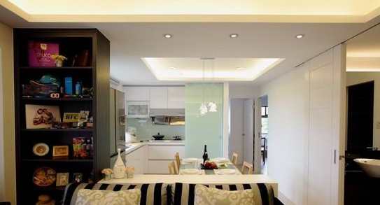 【太平洋家居网 设计频道】位在新竹的建案,拥有最亲近大自然的户外景观,设计师不浪费空间的优势,开放式手法串连公共空间,任一角落都能欣赏、享受令人放松的自然光景。客厅与休闲区以地坪转换稍做界定,面向大片绿意环境的休闲角落,是屋主在家健身运动的舒压空间,一旁暗门通往洗衣间,简约的立面收起一切序乱。