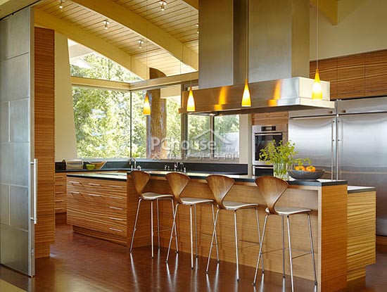 厨房采用的木材纹理与大理石砖形成鲜明的对比,而且木质材料经过磨光处理,看起来更加精细,使你可以尽情享受烹调美食的每一刻。